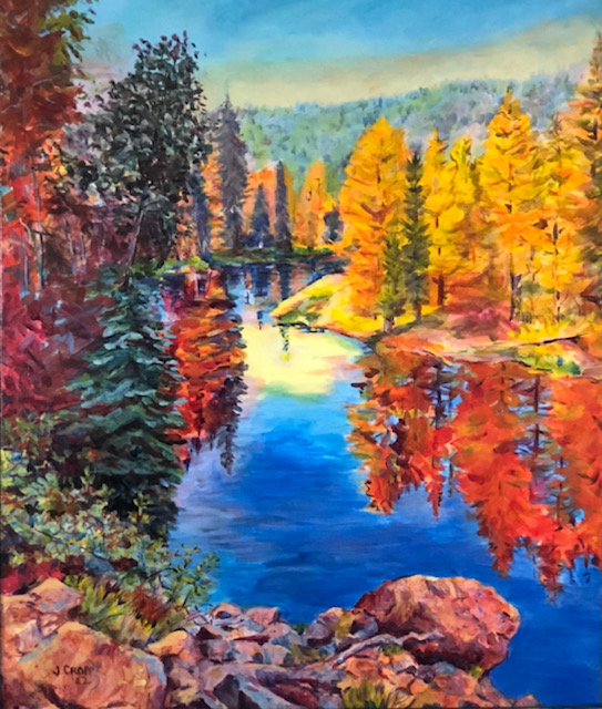We’re ready for fall! Welcome Alexa Rose Foundation Grant winner Lorelle Rau to our gallery this October. Lorelle is an accomplished collage artist. For her visit with the gallery, Lorelle has composed brilliant landscapes with cut found papers that add another layer of meaning, patterns, photos, maps, metallics and other paper materials buried within. Another landscape artist, Jane Cropp, will be returning to the gallery in October. Many of you may remember her fabulous acrylic paintings, inspired by her years of working for the Forest Service in Idaho, Colorado and New Mexico.