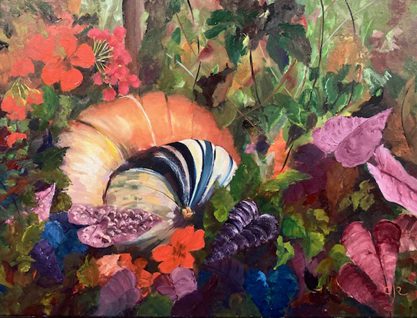 Images: “Serenity” by Valeria Yost, “Square Mountain Lake” by Gloria Dawson-Teats, “Turban Squash” by Carrie Jo Rehfield, “Southern Face” by Bradan Tobin
