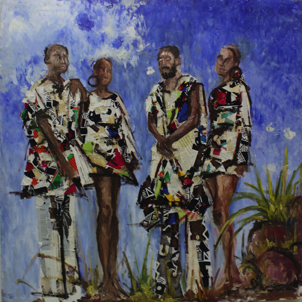 Our guest for January is Stephen Aifegha, an African painter and mixed media artist currently living in Nampa. His work centers on the historical, social and cultural issues of his homeland, using African fabrics and newsprint to create a dynamic narrative of and comment on the African continent, the African diaspora and contemporary social issues. In February of this year, Stephen completed an artist residency at Surel’s Place in Garden City, exhibiting work from his collection, “21st Century Africa,” and introducing his newest collection, “Third World Africa.” Join us for a reception on First Saturday, January 6, 4-6:30 p.m.