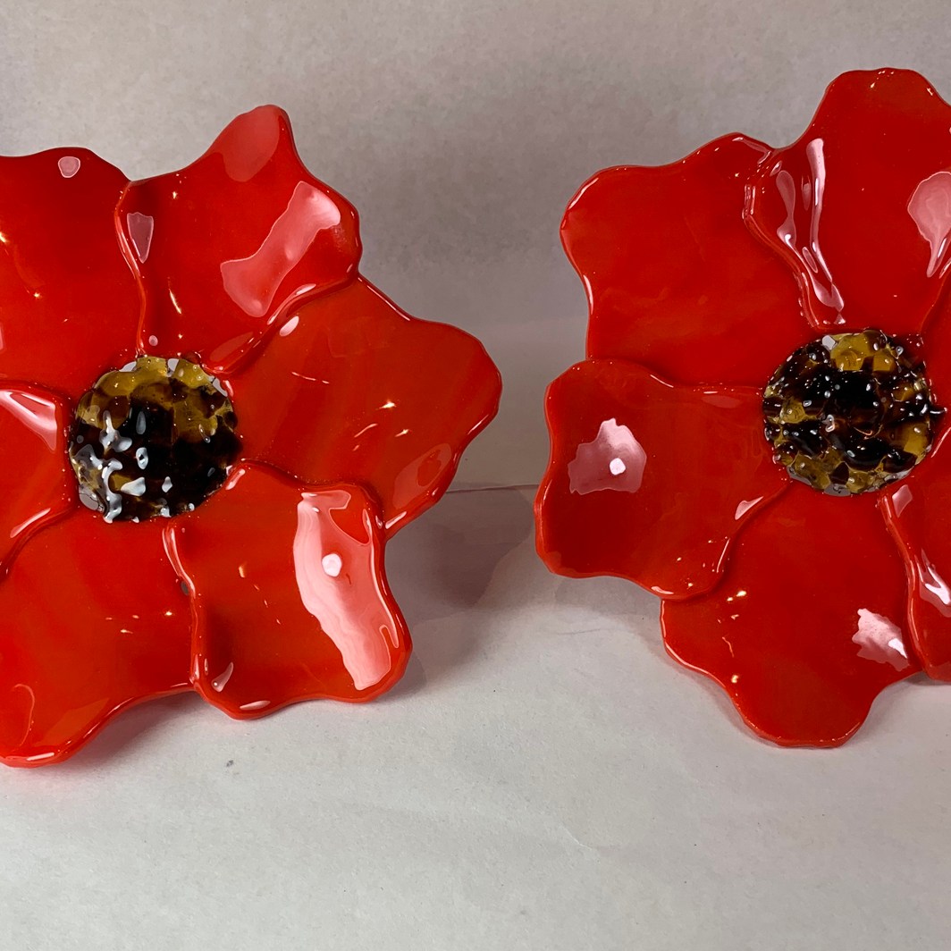 Laura creates unique and festive pieces in fused glass, with vibrant colors and pearlescent finishes.