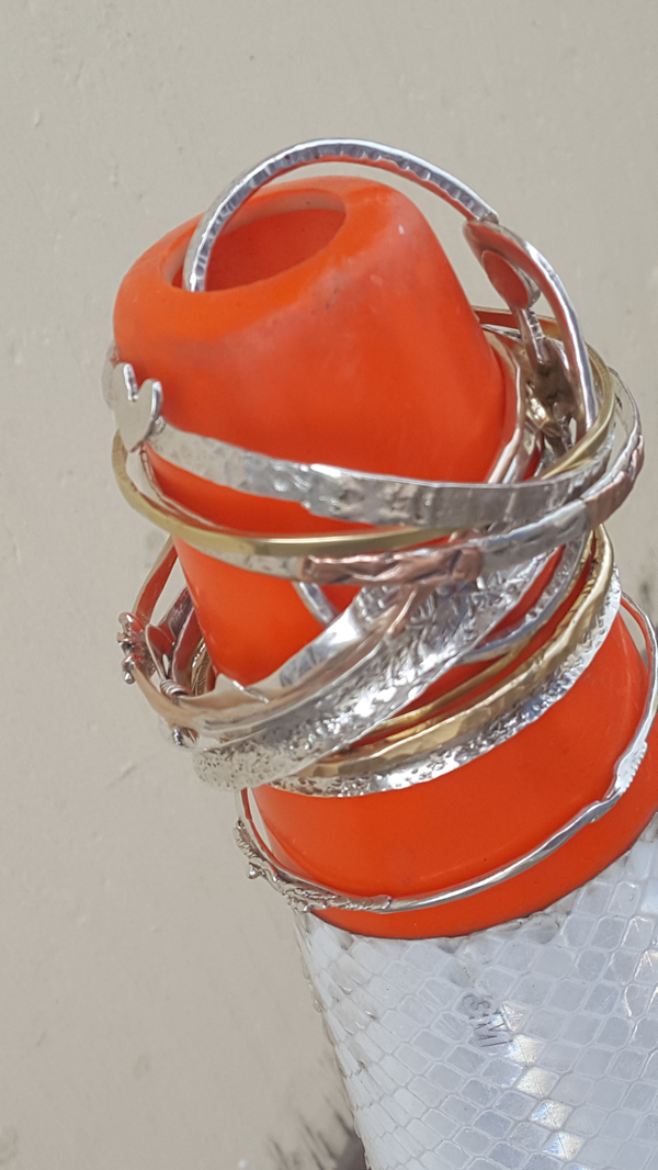 In the year 2004 we sold our gallery and home to depart for another adventure. We moved to Kenai peninsula, Alaska. So it was in Alaska that I first tried the art of metal smithing in the year 2008. It so happened that a beginner silversmith workshop opened up a spot for me to participate. So my exciting journey of making wearable art started then. I was so in love with this mastering of a, to me, new artform, so I wanted to dedicate full time to make wearable art. I, piece by piece, started to build a small silversmith studio. It is a lot that goes into that.
