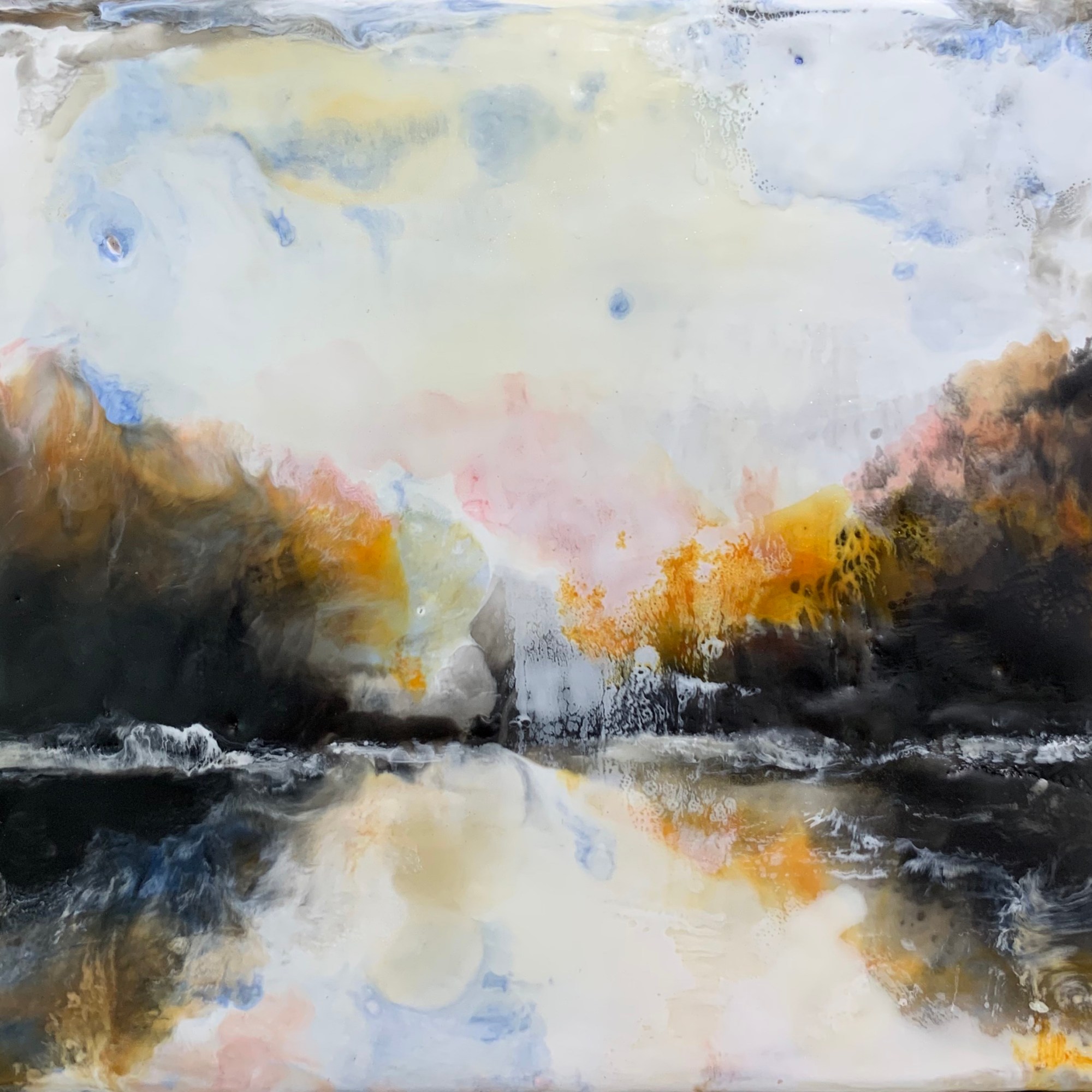 Theresa is a painter and printmaker who specializes in encaustic mixed-media paintings.