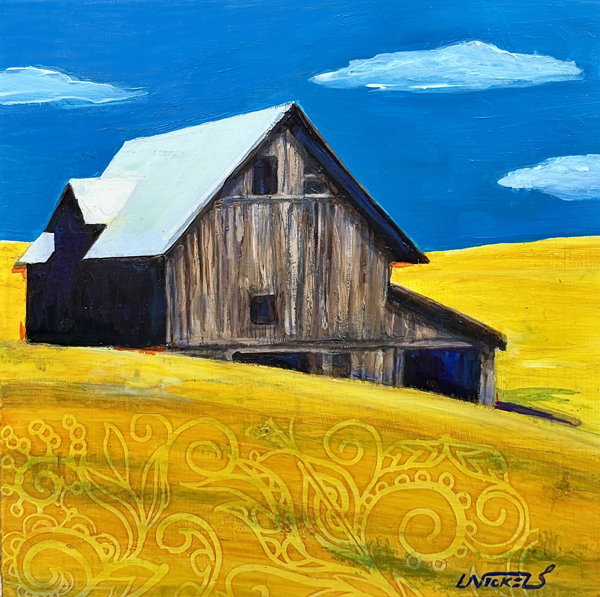 Gallery 55’s guest for the month of April is Washington painter Laurel Nickels. Her paintings are of rural scenes embellished with intricate patterns. In her paintings, the viewer sees a blue sky or golden grass carved in swirls in the most unexpected way and a way with light that increases the emotion of the piece. Many of the subjects she has chosen to paint are scenes from her adventures in McCall. Also, please note that from March 20 to April 20, photographer Connie McClaran’s work is 20% off for her Birthday Month Sale. Connie is known for her beautiful photos of Western landscapes.